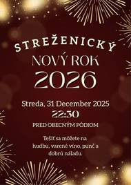 Príďte osláviť a privítať Nový rok 2026 spolu s nami! Čaká nás skvelá hudba, punč, varené víno a dobrá nálada. Začiatok je o 22:30 pred obecným pódiom.