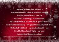 Smíšený pěvecký sbor Stříbrnice Vás srdečně zve na Vánoční benefiční koncert dne 27. prosince 2025 v 16:30 do kostela sv. Prokopa ve Stříbrnicích.