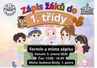 Základní škola Osvětimany pořáda dne 5.2.2026 od 13:00 do 16:30 hodin v budově ZŠ (1.patro) zápis žáků do 1. třídy pro školní rok 2026/2027.