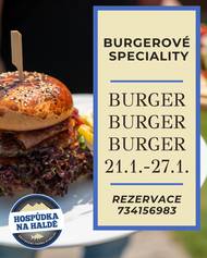 Hospůdka na Haldě si pro Vás od středy 21.1. do úterý 27.1. připravila BURGEROVÉ SPECIALITY. Těšit se můžete na hovězí, kachní, vepřový, zvěřinový, rybí, XXL burger a mnoho dalšího. Rezervace stolu na telefonu 734 156 983.