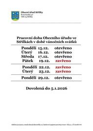 Pracovní doba Obecního úřadu ve Střílkách v době vánočních svátků