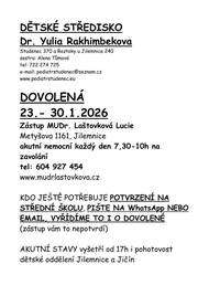 změna ordinačních hodin dětské lékařky