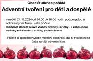 Obec Studenec pořádá v neděli 23.11. od 14:00 v areálu za sokolovnou adventní tvoření pro děti i dospělé.