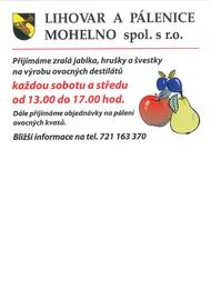 Příjem ovoce každou sobotu a středu 13:00-17:00 hod.