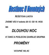 Hostinec U Novotných Vás zve v sobotu 20.12.2025 od 18 hodin na taneční zábavu se skupinou Proměny.