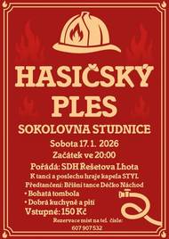 SDH Řešetova Lhota vás zve na ples - sobota 17.1.2026 od 20 hodin, sokolovna Studnice