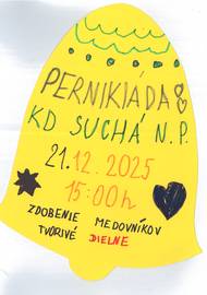 Milí občania, pozývame Vás poslednú adventnú nedeľu - 21.12.2025 - o 15:00 hod. na Pernikiádu. Vstup na podujatie od kuchyne.