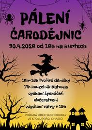 Poslední dubnový den se v naší obci konalo tradiční Pálení čarodějnic. Akce začala v 17h na kurtech programem Streetshow Znojmo. Děti si mohly prohlédnout hady, plácnout si s maskoty Minnie a Mickey Mouse. Přčipraveny byly dílničky kde si mohly děti vytvořit netopýra. Na závěr akce
