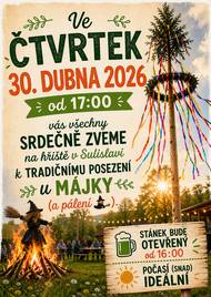 Na vědomost se dává, že příští neděli 22. března 2026 budou sulislavská děvčata "vynášet smrt" a vítat přicházející jaro. Při té příležitosti obejdou vesnická stavení s tradiční písní a vy jim můžete nabídnout výslužku v podobě vajec, sladkostí či peněz. Přejeme krásné jaro 🐣🌷🌞