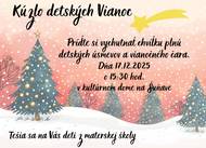Pozývame vás na podujatie Kúzlo detských Vianoc, ktoré sa uskutoční dňa 17. 12. 2025 o 15:30 hod. v kultúrnom dome.