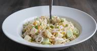 Tip, když je potřeba dát na stůl něco rychlého. Těstovinový salát připravíte téměř z čehokoli, co máte doma, a tento je top