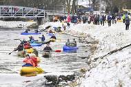 Na tradiční zimní splouvání Otavy vyjela v Sušici asi dvacítka lodí
