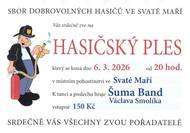 Srdečně vás zveme na Hasičský ples, který se koná 6. března 2026 od 20:00 v místním pohostinství ve Svaté Maří. K tanci a poslechu hraje Šuma Band. Vstupné je 150 Kč.
