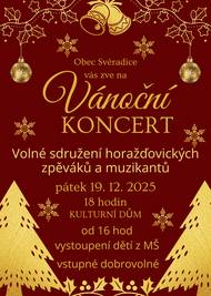 Srdečně vás zveme na vánoční koncert, který se koná v pátek 19. prosince v sále kulturního domu.