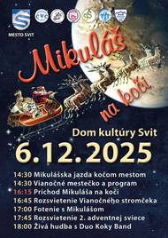 V sobotu 6. decembra 2025 sa môžu obyvatelia mesta Svit tešiť na Mikulášsku jazdu kočom, rozsvietenie stromčeka, adventnej sviece, vianočné mestečko a program Svitovských škôl pre celú rodinu.