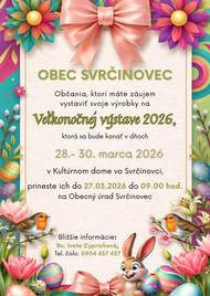 Občania, ktorí majú záujem vystavovať svoje výrobky na veľkonočnej výstave, ich môžu priniesť na obecný úrad do piatku 27.03.2026 do 09.00 hod.