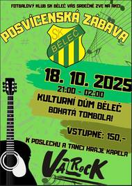 Fotbalový klub SK Běleč Vás srdečně zve 18.10.2025 od 21:00 do kulturního domu ve Bělči na POSVÍCENSKOU ZÁBAVU. K poslechu a tanci hraje kapela VALROCK.