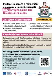 Ministerstvo práce a sociálních věcí zřídilo Klientskou zónu JENDA- evidence uchazeče o zaměstnání a podporu v nezaměstnanosti. Bližší informace jsou zveřejněny na stránkách www.jenda.mpsv.cz nebo v přiložené příloze.