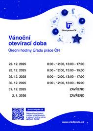 Úřad práce Židlochovice informuje občany o vánoční otevírací době, viz příloha