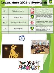 Přinášíme soupis akcí na leden a únor. Věříme, že i v tomto roce se budeme potkávat na obecních či spolkových akcích.