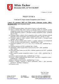 Zítra, v úterý 16. prosince od 17.00 hodin, bude naposledy v tomto roce zasedat městské zastupitelstvo. Mezi body projednání najdete: návrh rozpočtu města na rok 2026 obecně závaznou vyhlášku o regulaci zacházení s pyrotechnikou akční plán města Tachova na rok 2026 Zasedání můžete navštívit buď osobně v kinosálu Mže nebo jej sledujte on-line na odkazu ZDE.