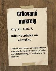 Již tento víkend, pokud počasí dovolí, se chystáme na víkend plný makrel. Jen bych vás chtěla poprosit, kdo víte, že chcete dorazit na makrelu, dejte nám dopředu vědět a zamluvte si ji v hospůdce, ať nejste pak zklamaní, že se na vás nedostalo. Časy od kdy do kdy můžete dorazit, jsou přibližně: Pátek: 17:00 - 21:00 hod. Sobota: 16:00 - 21:00 hod.