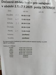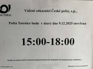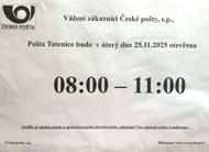 Pošta Tatenice bude v pátek 31.10.2025 zavřená