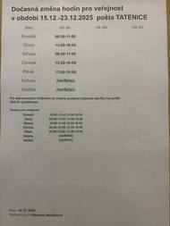 Změna otevírací doby na poště 25.11.2025