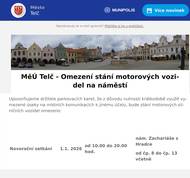 Upozorňujeme držitele parkovacích karet, že z důvodu nutnosti krátkodobě využít vymezené úseky na místních komunikacích k jinému účelu, bude stání motorových silničních vozidel omezeno: Novoroční setkání 1.1. 2026 od 10.00 do 20.00 hod. nám. Zachariáše z Hradce od čp. 8 do čp. 13 včetně