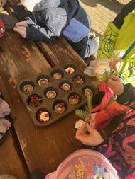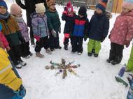 V uplynulém týdnu jsme se s dětmi zaměřili na proměny vody v mrazivém počasí. Vytvářeli jsme ledové obrazy z přírodnin a nadále si užívali zimní radovánky venku.