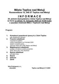 se koná ve středu 12. listopadu 2025 od 16:00 hodin v zasedací místnosti MěÚ v Teplicích nad Metují