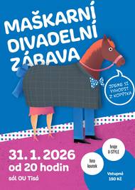 Skaláček Tisá Vás srdečně zve na Maškarní divadelní zábavu. Těšit se můžete na skvělou hudbu, zábavu, fotokoutek a originální masky. K tanci i poslechu zahraje kapela U-Style. 🎭 Přijďte se pobavit, zasmát a na chvíli zapomenout na starosti!