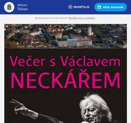 Neváhejte s nákupem vstupenek! Není to tak dlouho, co měl Václav Neckář vystoupit v Tišnově, ale na poslední chvíli zrušil akci kvůli zhoršení zdravotního stavu. Nyní se Městskému kulturnímu středisku v Tišnově podařilo domluvit termín nový a protože se Václav Neckář do Tišnova už těší, můžete se těšit již brzy - 2. dubna v sále Kina Svratka - na netradiční večer s touto českou hudební legendou. Víc informací k akci a předprodej vstupenek najdete na webu Městského kulturního střediska Tišnov a v kalendáři akcí na webu města Tišnova.