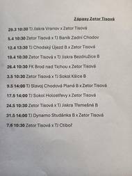 Rozpis zápasů Zetor Tisová. Přijďte podpořit náš tým!