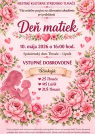 🌷 Pozývame vás na výnimočné popoludnie venované všetkým mamám 🌷 Deň matiek je príležitosť zastaviť sa, poďakovať a venovať chvíľu tým, ktoré tu pre nás vždy boli – s láskou, trpezlivosťou a pochopením. Príďte si spolu s nami pripomenúť, aké dôležité a nenahraditeľné miesto majú mamy v našich životoch. ❤️ Pripravili sme pre vás slávnostnú akadémiu plnú nežných momentov, úsmevov a úprimných detských vystúpení, ktoré potešia každé srdce. Čaká vás program, ktorý prinesie radosť, dojatie aj krásnu atmosféru, na ktorú budete ešte dlho spomínať. 🗓️ 10. mája 2026 🕓 o 16:00 hod. 📍 Spoločenský dom Tlmače – Lipník Vezmite so sebou svoje mamy, staré mamy, rodinu či priateľov a príďte spoločne prežiť chvíle plné lásky a vďaky. 🌸 Tešíme sa na spoločné stretnutie!