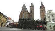 /VIDEO, FOTO/ Symbol Vánoc v úterý dopoledne dorazil na Velké náměstí v Hradci Králové. Smrk ztepilý od dárce z Praskačky se tyčí 21 metrů nad náměstím a rozsvítit se má v neděli večer. Druhý, o něco menší strom, pak ještě dnes vztyčí technické služby na Masarykově náměstí.