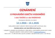 Oznámení o provádění odečtu vodoměrů v obci Toušice a v obci Mlékovice