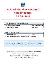 PLACENÍ MÍSTNÍCH POPLATKŮ V OBCI TOUŠICE NA ROK 2026
