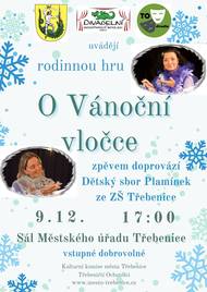Divadelní ochotnický spolek Jirny jako host Třebenických ochotků představí 9.12.2023 od 17.00 hod. v sále MěÚ Třebenice rodinnou hru O Vánoční vločce. Zpěvem doprovází Dětský sbor Plamínek ze ZŠ Třebenice. Vstupné dobrovolné.