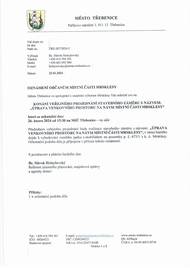 Pozvání na konání veřejného projednání "Úprava venkovního prostoru na návsi místní části Mrsklesy", které se uskuteční 26. února 2024 od 15.30 v sále MěÚ Třebenice. Pozvánka a podoba díla viz příloha.