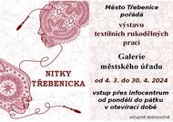 Město Třebenice pořádá výstavu textilních rukodělných prací od 4. března do 30. dubna 2024 v Galerii městského úřadu. Vstup přes infocentrum od pondělí do pátku v otevírací době.