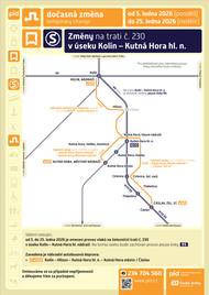 Od 5.1.-25.1.2026 dochází ke změně provozu linky S20 na trati z Kolína do Kutné Hory z důvodu modernizace trati v Kolíně. Všechny vlaky jsou v úseku Kolín – Kutná Hora nahrazeny autobusy z dočasně zřízeného stanoviště č.13 před prodejnou potravin. Provoz vlaků na lince R9 je zachován bez omezení.