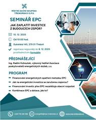 Zveme vás na odborný seminář k metodě EPC, který pořádáme 10. prosince v Třeboni. Společně se zaměříme na to, jak realizovat energetické investice se zaručenou úsporou, jaké jsou možnosti financování bez zatížení obecního rozpočtu i jak lze kombinovat EPC s dotačními programy.