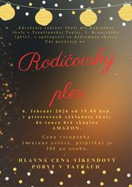 Pozývame Výs na RODIČOVSKÝ PLES, ktorý sa uskutoční 6.februára 2026. Vstupenky na ples sú v predaji do 4.februára 2026 v riaditeľni školy. Cena vstupenky je 30EUR. Tešíme sa na Vás.