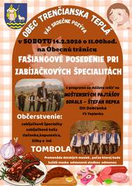 V sobotu 14. februára 2026 sa na Obecnej tržnici uskutočnia FAŠIANGY. Môžete sa tešiť na hudobné vystúpenia a zabíjačkové špeciality.