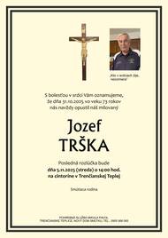 Před 1 měsícemOpustil nás pán Jozef TrškaS bolesťou v srdci Vám oznamujeme, že dňa 31.10.2025 vo veku 73 rokov nás navždy opustil pán Jozef TRŠKA Posledná rozlúčka bude dňa 5.11.2025 (streda) o 14:00 hod. na cintoríne v Trenčianskej Teplej.