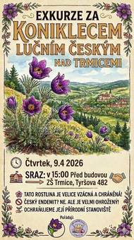 Zveme Vás na Exkurzi za Koniklecem lučním nad Trmicemi. Sraz je ve čtvrtek 9.4.2026 v 15 hodin před Základní školou Trmice, Tyršova 482