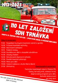 SDH Trnávka si vás dovoluje pozvat na oslavu 110. výročí svého založení. Slavnostní odpoledne proběhne tuto sobotu 17. června 2023 od 11:30 hodin ve sportovním areálu u požární zbrojnice v Trnávce. Akce započne průjezdem hasičské techniky a slavnostním zahájením. Následovat budou požární útoky, soutěže pro děti a dospělé odvážlivce, ukázky hašení, simulovaná dopravní nehoda, použití hasících přístrojů, pěna pro děti, večerní zábava s ALZa Retro Bandem a ohňostroj. Po celou dobu bude k dispozici bohaté občerstvení, skákací hrad a doprovodný program spojený s technikou hasičských sborů, Policií ČR a Českým červeným křížem. Na vaši účast se těší členové SDH Trnávka.