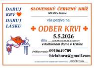 MS SČK v Trstíne Vás pozýva na odber krvi dňa 5.5.2026 v KD v Trstíne