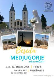 V neděli 29. 3. 2026 v 16.30 hod. se koná ve společenském sále Penzionu 888 beseda "Medjugorje".
